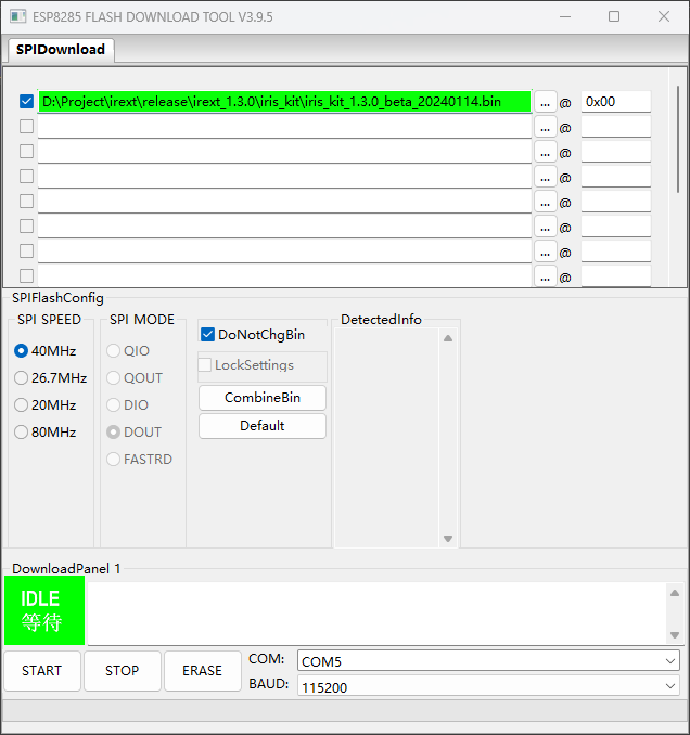 Choose ESP8285 (ESP-01M) and select the firmware bin to flash to your COM port.